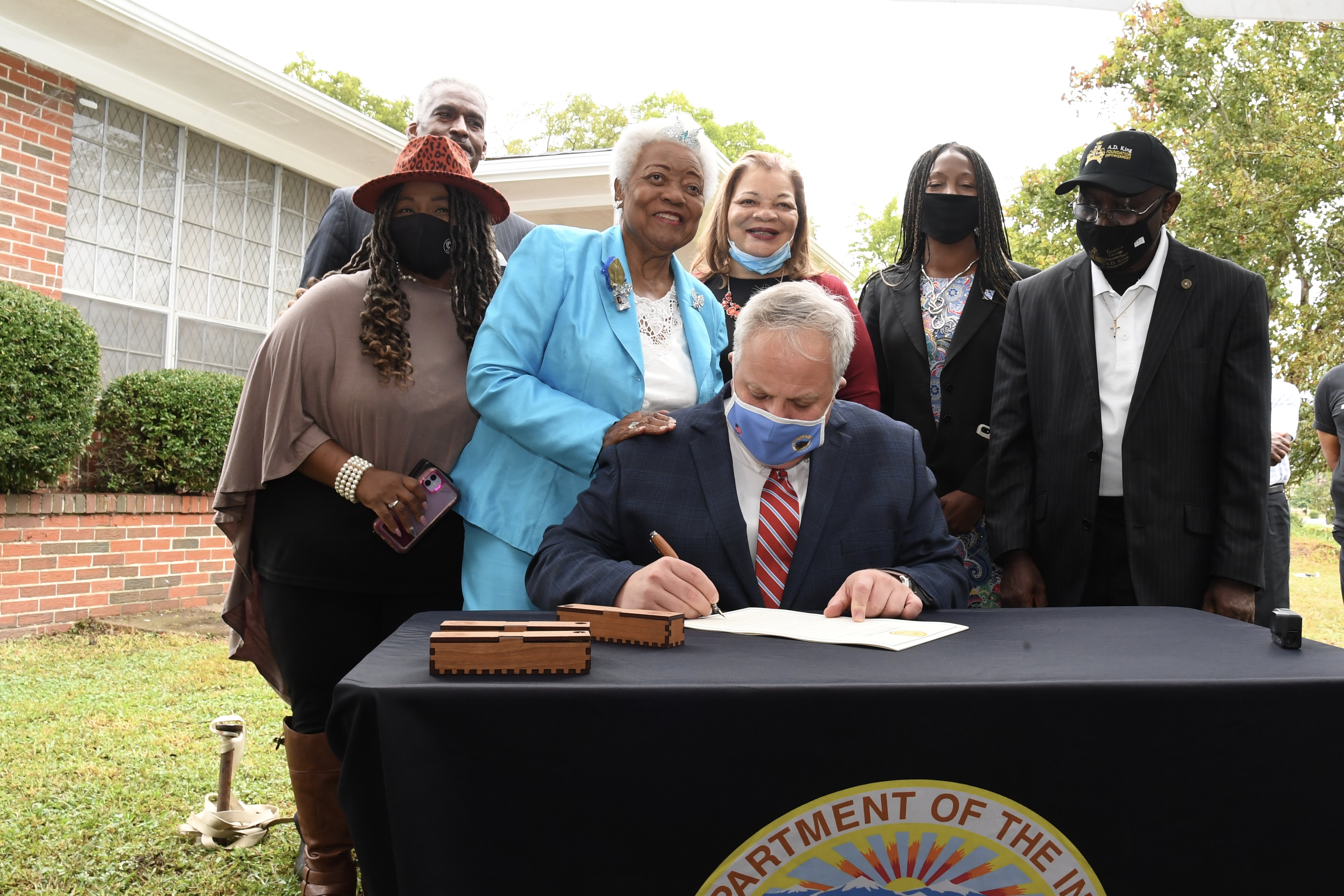 ENSLEY, Ala. – Today, U.Southward. Secretarial assistant of the Interior David 50. Bernhardt was joined past Naomi Ruth Hairdresser King, who is the married woman of Alfred Daniel (A.D.) King, Dr. Alveda King, who is the girl of A.D. Rex, Omie Crockett, who is the owner of A.D. Male monarch dwelling house, Jacqueline Washington Crockett, who is the daughter of Omie Crockett, and other distinguished guests at the Reverend A.D. Male monarch, Sr. business firm every bit he signed a proclamation designating the abode to be included in the African American Civil Rights Network (AACRN). This designation farther recognizes A.D. King's numerous contributions to advance ceremonious rights as the leader of the Birmingham Campaign.
